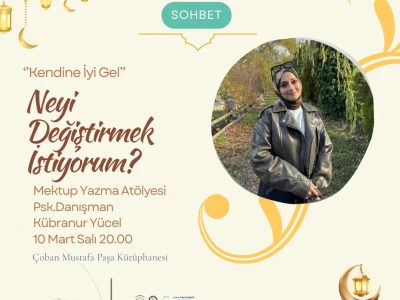 “Kendine İyi Gel” – Neyi Değiştirmek İstiyorum? Mektup Yazma Atölyesi Psikolojik Danışman Kübranur Yücel eşliğinde gerçekleşecek bu atölyede, mektup yazma yöntemiyle iç dünyamıza yöneliyor; değiştirmek istediğimiz duygu ve düşüncelere alan açıyoruz. Kelimelerin iyileştirici gücüyle kendimize yaklaşmak isteyen herkesi bekliyoruz. 🌿